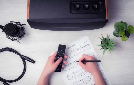 Dzięki urządzeniu możesz relaksować się przy dźwiękach ulubionej muzyki, a zdalna obsługa pozwala regulować parametry głośnika bez ruszania się z przytulnego miejsca. Umożliwia to dołączony do zestawu pilot, za pomocą którego możesz zmienić poziom głośności, kolejność utworów lub preferowane źródło dźwięku. To nie wszystko — w górnej części głośnika znajdują się pokrętła, dzięki którym precyzyjnie ustawisz tonację i moc basów.