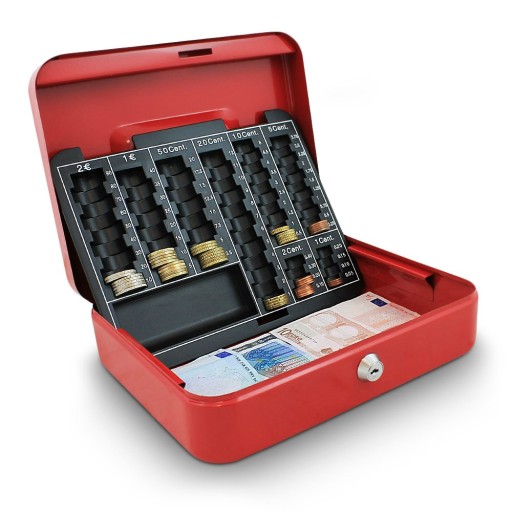 Ta poręczna kasetka jest idealnym miejscem do organizowania i liczenia pieniędzy i monet. Zintegrowane schowki we wkładce do monet umożliwiają szybki dostęp do monet o różnych wartościach - bez wyszukiwania. W dolnym obszarze jest dużo miejsca, np. w przypadku banknotów, paragonów, rolek na monety, biletów - nawet niewielkie znaczki i poduszki z tuszem mają swoje miejsce.