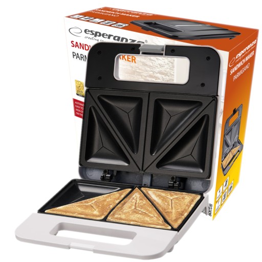 Opiekacz do kanapek Esperanza PARMIGIANO jest to niezwykle proste i praktyczne urządzenie które znajdzie dla siebie miejsce w każdej kuchni! Dzięki szybkiemu podgrzewaniu pozwala na przygotowanie wymarzonej kanapki w dosłownie kilka minut. Wybierając nasz toster będziesz mógł się cieszyć pysznymi kanapkami każdego dnia!