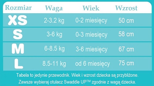 Zawsze wybieraj otulacz Swaddle UP™ zgodnie z wagą dziecka, a nie z wiekiem.