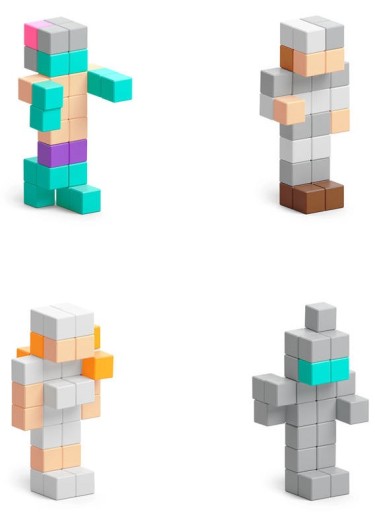 Magnetyczne klocki PIXIO w idealnie dopasowanych kolorach pozwolą wcielić w życie wszystkie kreatywne pomysły.