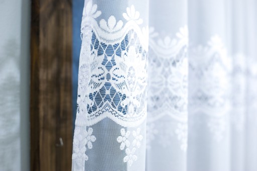 Elegancka klasyczna firanka żakardowa z imitacją koronki ( gipiury ).