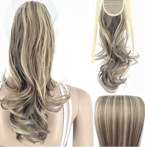 Kucyk doczepiany, kręcone włosy blond z jaśniejszymi refleksami. Doskonała jakość.