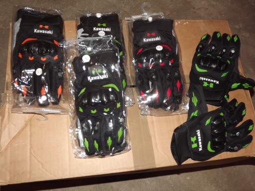 Polecam 2 rodzaje Rękawic Motocyklowych Kawasaki w rozmiarach od M do XXL . Rękawice czarne ze wstawkami zielonymi oraz czerwonymi .Na zamówienie ze wstawkami pomarańczowymi ,na tą chwilę nie dostępne . Cena dotyczy samych rękawic . Sama Czapka z daszkiem Kawasaki MOTO GP MONSTER ROSSI 70 zł . Razem Czapka i rękawice jako komplet 120 zł . Polecam na prezent .