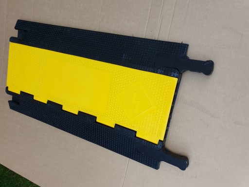 Ten praktyczny próg na kable został wykonany z bardzo mocnego kompozytu oraz gumy o właściwościach antypoślizgowych. Górna jego część pokryta jest gumą w żółtym kolorze, dzięki której najazd jest widoczny nawet przy złych warunkach pogodowych i o zmierzchu. Próg na kable cechuje odporność na tłuste i żrące substancje, takie jak oleje, kwasy i benzyna. W jego strukturze nie ma żadnych elementów metalowych, co ogranicza do zera możliwość korozji.