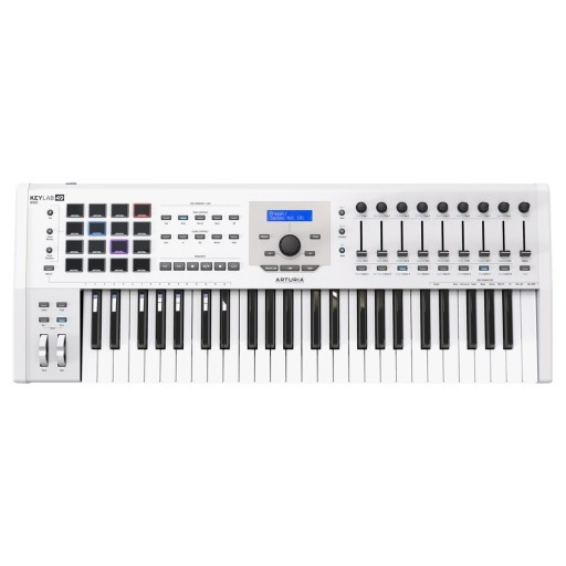 Czołowy kontroler Arturii - KeyLab MkII stanowi wielki krok w przód pod kątem kontroli, jakości i ekspresji. Charakteryzuje się intuicyjną klawiaturą z 49 klawiszami, aluminiową obudową, zaawansowanym interfejsem, 16 padami RGB, 9 faderami, 9 enkoderami, 5 wejściami ekspresji, 4 wyjściami CV, kontrolą kategorii oraz oczywiście połączeniami MIDI i USB. Ponadto, w zestawie dostępny jest zestaw software: wtyczka fortepianowa Piano V, Analog Lab 3 oraz Ableton Live Lite.