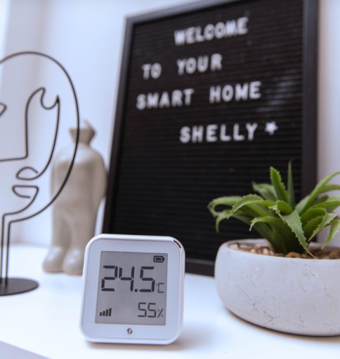 Shelly Plus H&T łączy zaawansowaną technologię ze współczesnym minimalistycznym designem, który idealnie pasuje do każdego wnętrza domu lub biura. Dzięki wyświetlaczowi e-ink o niskim zużyciu, Shelly Plus H&T będzie na bieżąco informować o poziomie temperatury i wilgotności w pomieszczeniach.