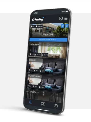 - Włączenie Bluetooth - dodawaj urządzenia szybko i łatwo przez połączenie Bluetooth za pomocą aplikacji Shelly Cloud.