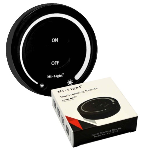 Sterownik ścienny Mi-Light czarny FUT087-B to wygodny w obsłudze, okrągły kontroler przeznaczony do obsługi i sterowania produktami Mi-Light z serii Mono - jednokolorowymi. Pilot Mi-Light FUT087B łączy się bezprzewodowo z odbiornikami z serii FUT036 i pozwala na włączanie i wyłączenie światła, oraz na płynną regulację jego jasności. Sterownik Mi-Light czarny FUT087-B zasilany jest bateryjnie - 2xAAA i możemy zamontować go na ścianie za pomocą dołączonej taśmy dwustronnej lub śrub, a także wykorzystywać jako przenośny kontroler.