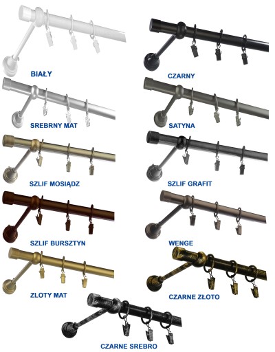U nas możesz skompletować nietypowy zestaw kolorystyczny np. karnisz czarny z satynowymi żabkami i zakończeniami.