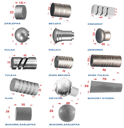 - Zakończenia karniszy - 2 szt (model do wyboru - foto niżej)