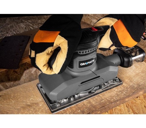 Szlifierka oscylacyjna 380 W, stopa 115 x 230 mm 59G329 GRAPHITE to narzędzie do wygładzania oraz polerowania powierzchni na sucho. Kompatybilne do obróbki i oczyszczania powierzchni o zróżnicowanej twardości oraz strukturze.