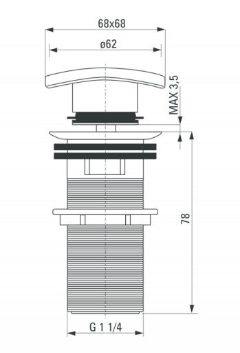 ...........................KOREK CLICK-CLACK KWADRATOWY CHROM Z PRZELEWEM .....................
