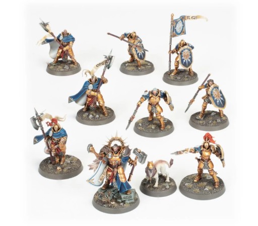 The chosen champions of Sigmar, plucked from their mortal bodies at the moment of their death and reforged as shining heroes clad in thick golden armour. Each Stormcast Eternal is a nigh-immortal warrior capable of fighting hordes of the fiercest monsters and emerging victorious.