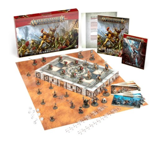 1x 80-page Harbinger Edition Book (Softback): Discover the lore of Warhammer Age of Sigmar, as well as the background of the factions and units in the book. The book also contains several introductory tutorial battleplans that utilise the miniatures in the set, designed to teach you the basics of the game in manageable chunks.