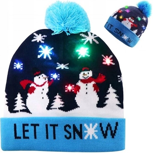 РОЖДЕСТВЕНСКАЯ ЗИМНЯЯ ШАПКА РОЖДЕСТВЕНСКИЕ СВЕТЯЩИЕСЯ СНЕГОВИК ТЕПЛЫЙ ЦВЕТНОЙ СВЕТОДИОДНЫЙ ПОДАРОК
