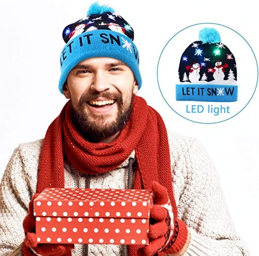 ✅CZAPKA ZIMOWA LED ŚWIĄTECZNA ŚWIĘTA ŚWIECI