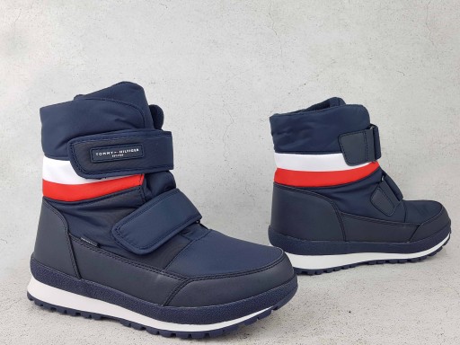 Ocieplane śniegowce z regulowanym zapięciem na rzep TOMMY HILFIGER STIVALETTO NEVE to idealne rozwiązanie w chłodne dni. Bez względu na to, czy znajdujesz się na zaśnieżonej ścieżce do ośrodka narciarskiego czy też na oblodzonych ulicach miasta, zapewnią Ci one ciepło i pewny krok w zimowych warunkach.