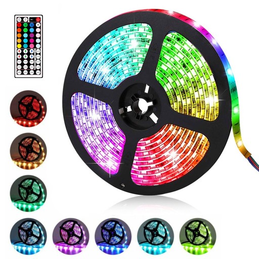 TAŚMA LED KOLOROWA OŚWIETLENIE LEDY RGB 5m + PILOT
