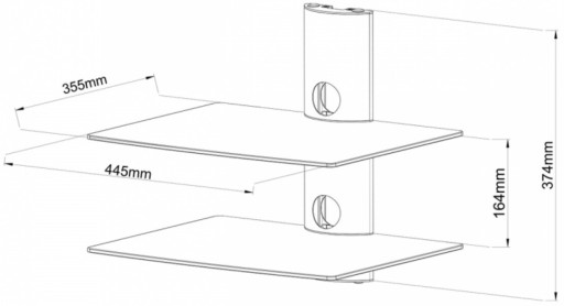 Półka ścienna podwójna na DVD/tuner, udźwig do 10kg na półkę, szkło, kolor czarny