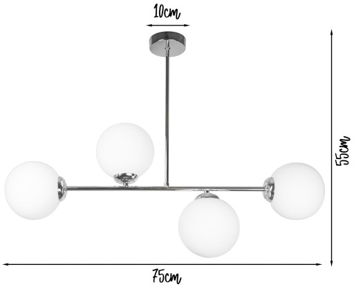 - Wymiary lampy: Wysokość max 55 cm, długość 75cm, podsufitka 12cm