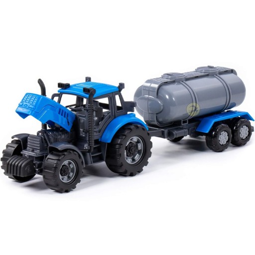 Traktor z napędem Progress z maszyną rolniczą beczkowozem i pługiem Polesie