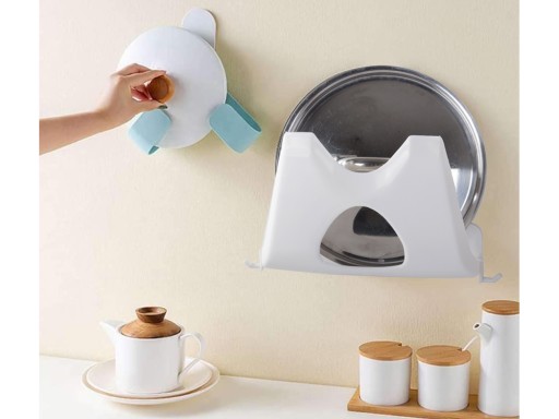 Wieszak do przechowywania pokrywek i desek do krojenia to przydatny gadżet w każdej kuchni. Można go umieścić w dowolnym miejscu, zapewniając wygodę użytkowania. Wieszak do przechowywania może pomieścić różne akcesoria kuchenne. Uchwyt nie wymaga wiercenia w ścianie, wystarczy go przykleić za pomocą samoprzylepnego wieszaka, jest łatwy w montażu.