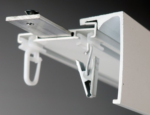 ✅ w zestawie żabki albo agrafki przesuwające się na ślizgach H zapewniających minimalną odległość żabki od profila, cichy i łatwy przesuw firanek po całym karniszu;