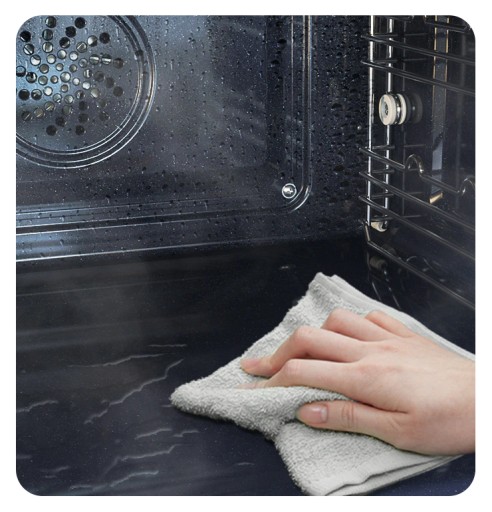 Czyszczenie parą to szybka i wygodna metoda, niewymagająca użycia detergentów. Żeby skutecznie wyczyścić piekarnik, wystarczy wlać do środka odrobinę wody i wybrać funkcję czyszczenia parą, która skutecznie rozpuści zabrudzenia. Na koniec zabrudzenia można z łatwością usunąć za pomocą ściereczki.