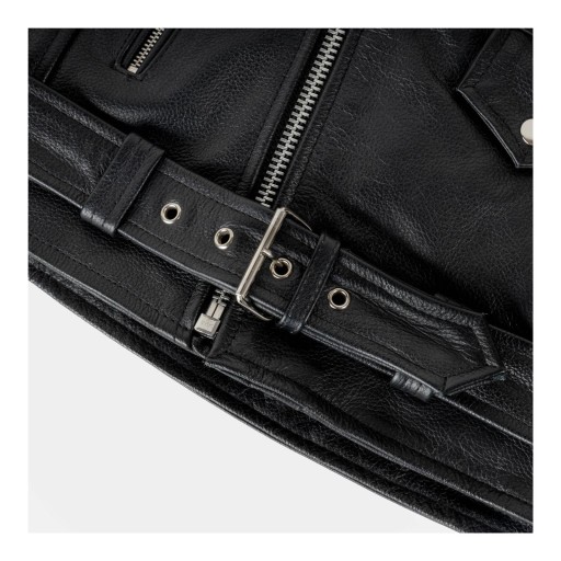 Motocyklowa kurtka skórzana z ochraniaczami łokci i barków CE Level 1 gwarantuje pełną ochronę. Ma dodatkową kieszeń na plecach dającą możliwość dołożenia ochraniacza. Regulacja w pasie pozwala na precyzyjne dopasowanie do każdej sylwetki. Ma kieszenie zewnętrzne i jedną wewnętrzną.