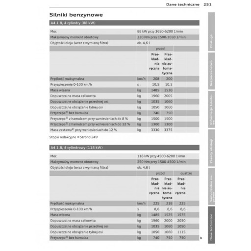 Benzynowe - 1.8, 2.0, 3.2 również wersje Quattro