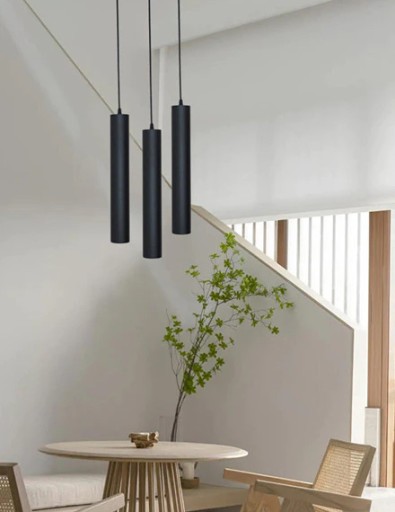 LAMPA WISZĄCA potrójna ŻYRANDOL SUFITOWA ZWIS wąski TUBA 15cm na 3x GU10