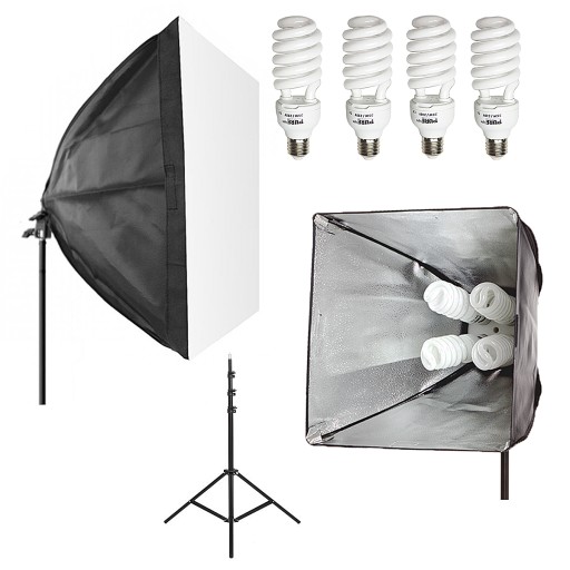Softbox jest przystosowany do pracy z czterema żarówkami. Umożliwia skokową regulację mocy poprzez włączanie/wyłączanie par żarówek (dwa włączniki): 0%-50%-100%. Zestaw mocuje się do statywów oświetleniowych za pomocą uchwytu, który zapewnia dowolną regulację kąta nachylenia.
