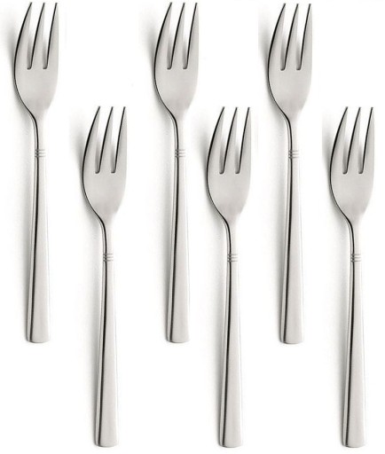 PIĘKNY NOWOCZESNY KOMPLET SZTUĆCÓW OBIADOWYCH W MINIMALISTYCZNYM SKANDYNAWSKIM STYLU Z WIDELCZYKAMI DO CIAST I DESERÓW