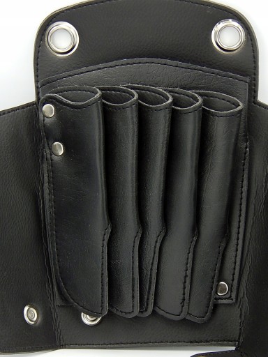 Profesjonalna kabura fryzjerska wykonana z wysoko jakościowej ekoskóry w kolorze czarnym.