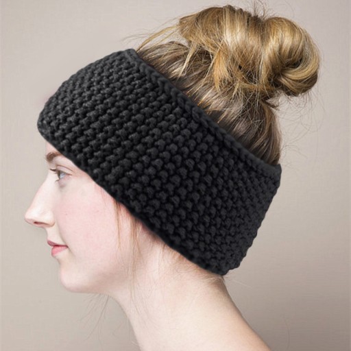 Dwuwarstwowa opaska na głowę polarowo-włóczkowa CZARNA