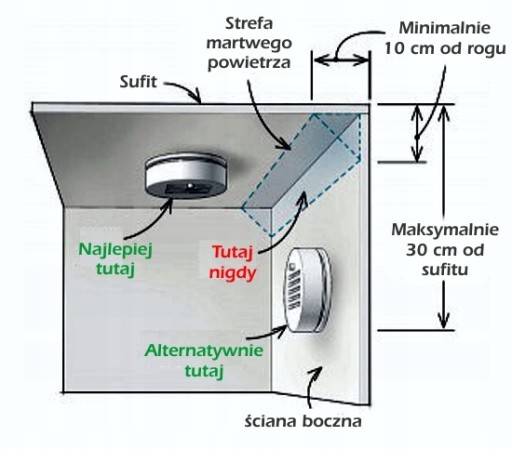 - Czujnik czadu jaki należy umieścić w pomieszczeniu powinien zostać zamontowany nie dalej niż 6 metrów od potencjalnego źródła czadu. Detektor nie powinien być zasłonięty. Ponadto należy umieścić czujnik czadu na wysokości ok. 150 cm, ponieważ gaz utrzymuje się stosunkowo nisko od podłoża.