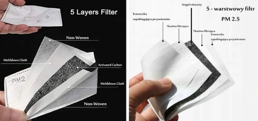+ 5 WYMIENNYCH FILTRÓW FFP2 HEPA PM 2.5