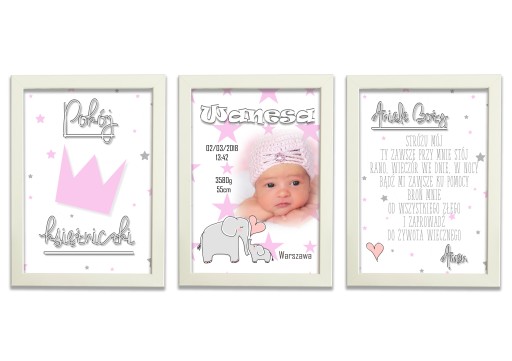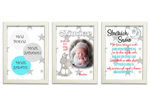 3 plakaty metryczka A4 ZESTAW do pokoju dziecka