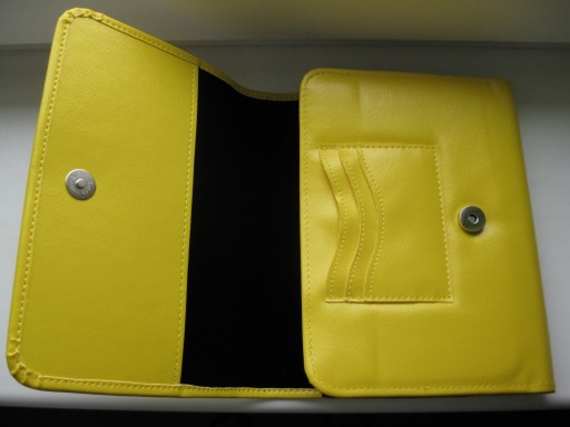 Po otwarciu dwie kieszonki na wizytówki oraz duża kieszeń na instrukcję obsługi, książkę serwisową itp.