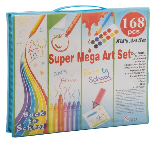 ✅Zestaw kredek i artykułów piśmienniczych Mega Art 168 elementów
