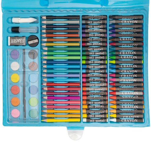 Zestaw rysunkowo-malarski został zamknięty w praktycznej, zapinanej na klips, przenośnej teczce, dzięki czemu łatwiej utrzymać porządek i ład w przyborach, bez obawy o uszkodzenie czy połamanie ulubionych kredek.