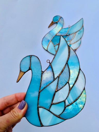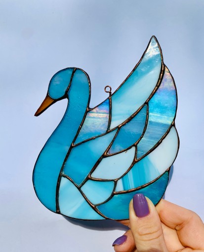 Piękna witrażowa zawieszka łabędź wykonana ze szkła witrażowego najwyższej jakości metodą Tiffany.