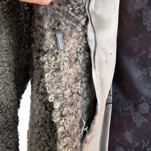 STARE NATURALNE KRÓTKIE FUTERKO Z KARAKUŁ W SZARYM KOLORZE.