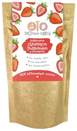 Po spróbowaniu naszych truskawkowych chipsów nigdy więcej nie sięgniesz po inne tego typu produkty! Niskokaloryczne, smakowite i wspaniale chrupiące liofilizaty truskawkowe przekonują do siebie każdego fana zdrowej żywności, choć nie tylko. Po truskawki liofilizowane chętnie sięgają także osoby, które nigdy wcześniej nie próbowały tego rodzaju przysmaków. Co jeszcze – oprócz wyjątkowego smaku – zyskujesz, wybierając liofilizowane truskawki? Dostarczasz do organizmu witaminę C, E, B, poprawiasz odporność, a także wspomagasz odbudowę jego komórek. Zatem chrupmy i dbajmy o zdrowie oraz urodę dzięki OTO Truskawce liofilizowanej w plastrach!
