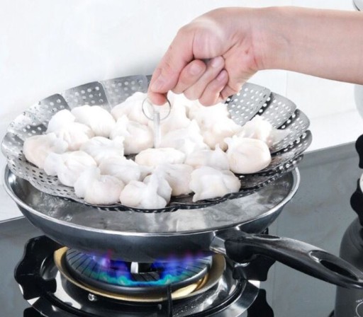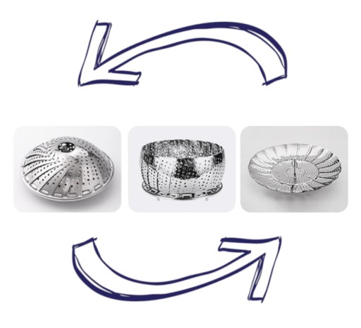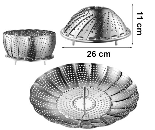 Do korzystania z sitka nie potrzeba żadnego specjalnego garnka. Automatycznie składając i rozkładając się dopasuje się do każdego kształtu.