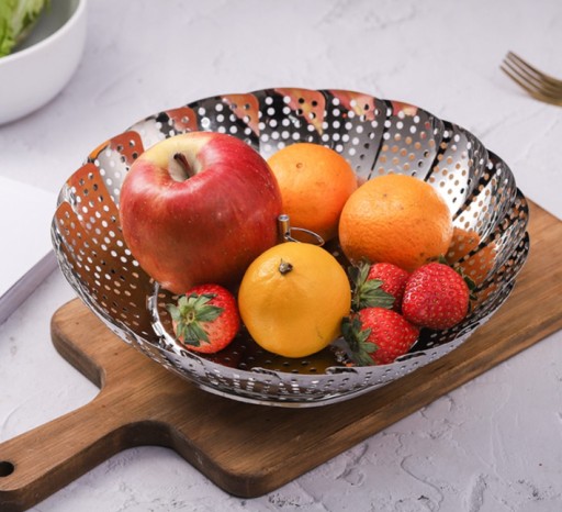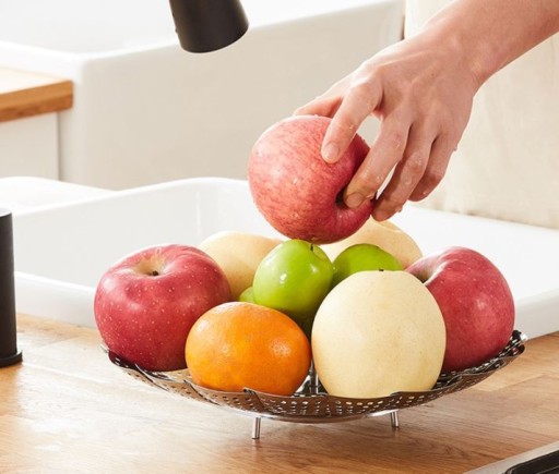 Może również pełnić rolę składanej patery na owoce lub inne przekąski, jednocześnie wzbogacając wygląd naszego stołu.