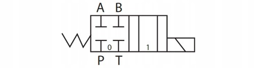- Konfiguracja: dwie cewki 12V DC, suwak 2-pozycyjny typu EB stabilizowany sprężyną do pozycji 0