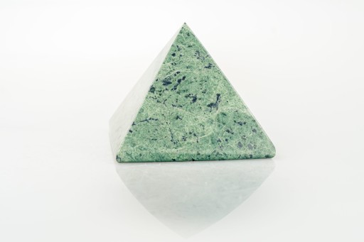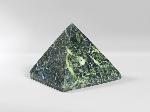 Czworokątna piramida wykonana z kawałka serpentynitu z Nasławic u podnóża Masywu Ślęży.
