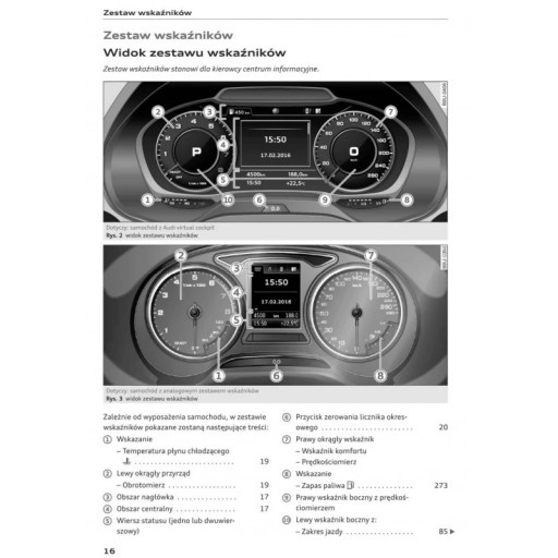 Instrukcja obsługi Audi zawiera wszystkie wersje wyposażenia oraz przydatne informacje jak sprawnie i bezpiecznie użytkować pojazd np.-wskaźniki, lampki kontrolne, otwieranie i zamykanie-oświetlenie i widoczność, fotele, schowki, ogrzewanie, wentylacja, klimatyzacja-jazda, wskazówki eksploatacyjne, konserwacja pojazdu-poziomy płynów, sprawdzanie i uzupełnianie, czynności awaryjne, wymiana kół, bezpieczniki, wymiana żarówek-dane techniczne... oraz wiele wiele innych rzeczy, które dają poczucie bezpieczeństwa oraz komfortu podróżującym .Polskie prawo nakłada na sprzedawcę obowiązek dołączania instrukcji obsługi auta w języku polskim do . Instrukcja obsługi auta jest nowa i w języku polskim.